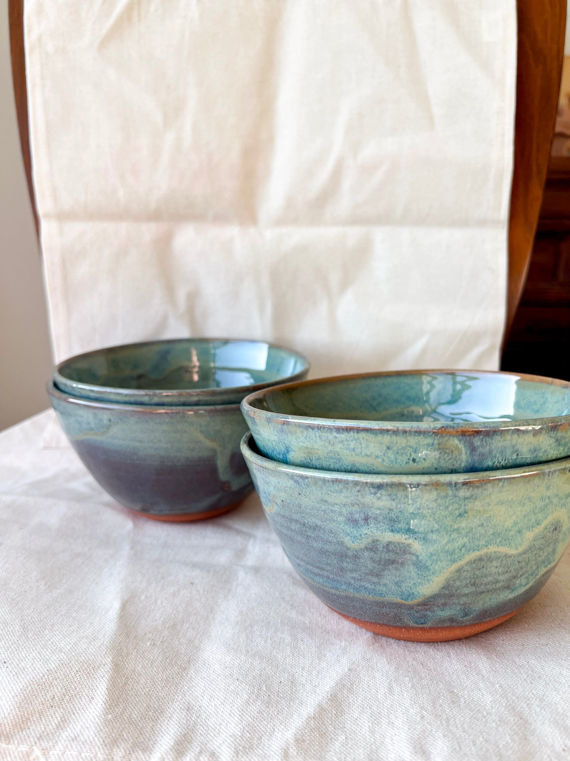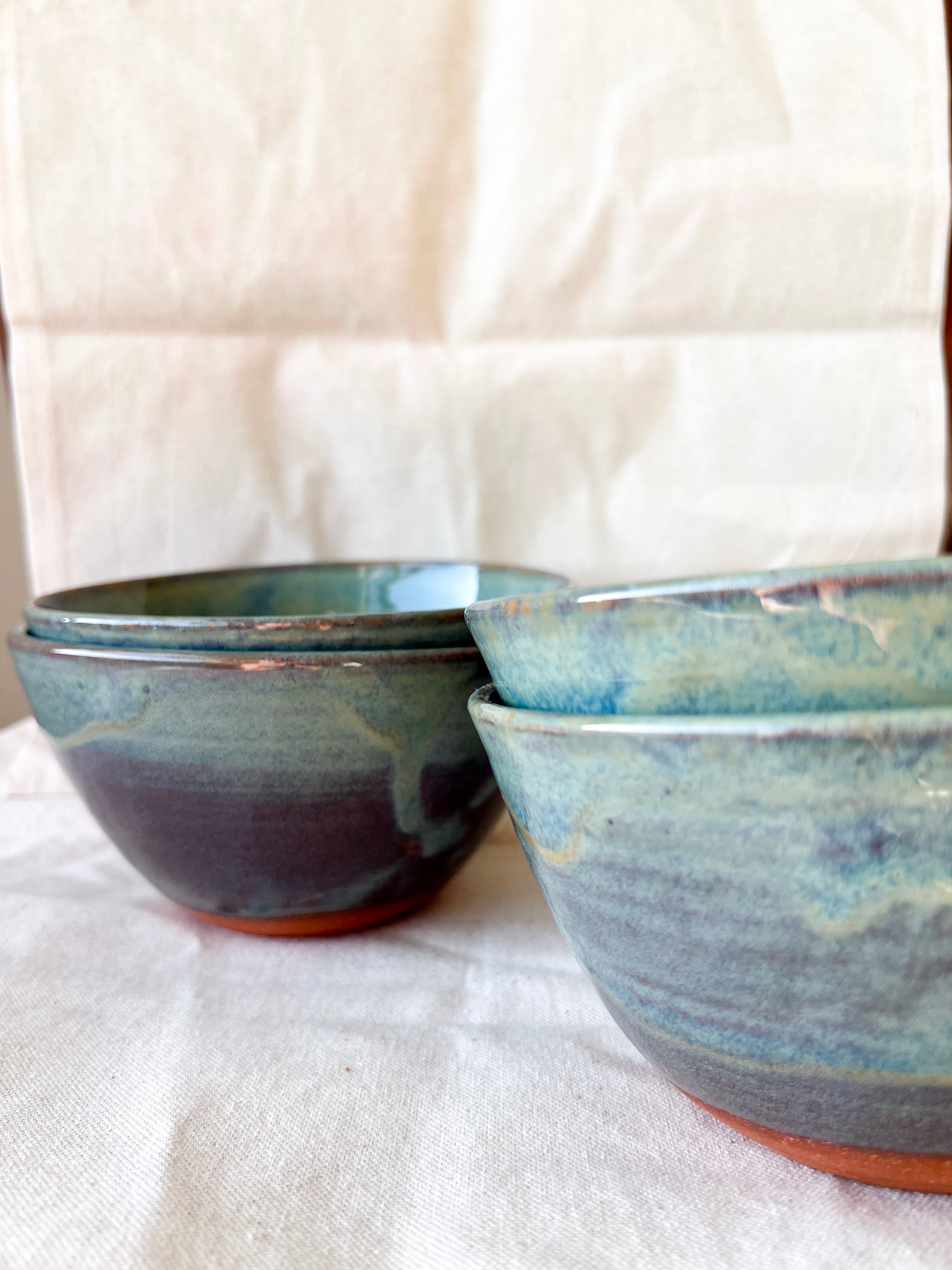 Handmade bowls thrown on the wheel. This item is food and drink safe, and dishwasher and microwave safe.