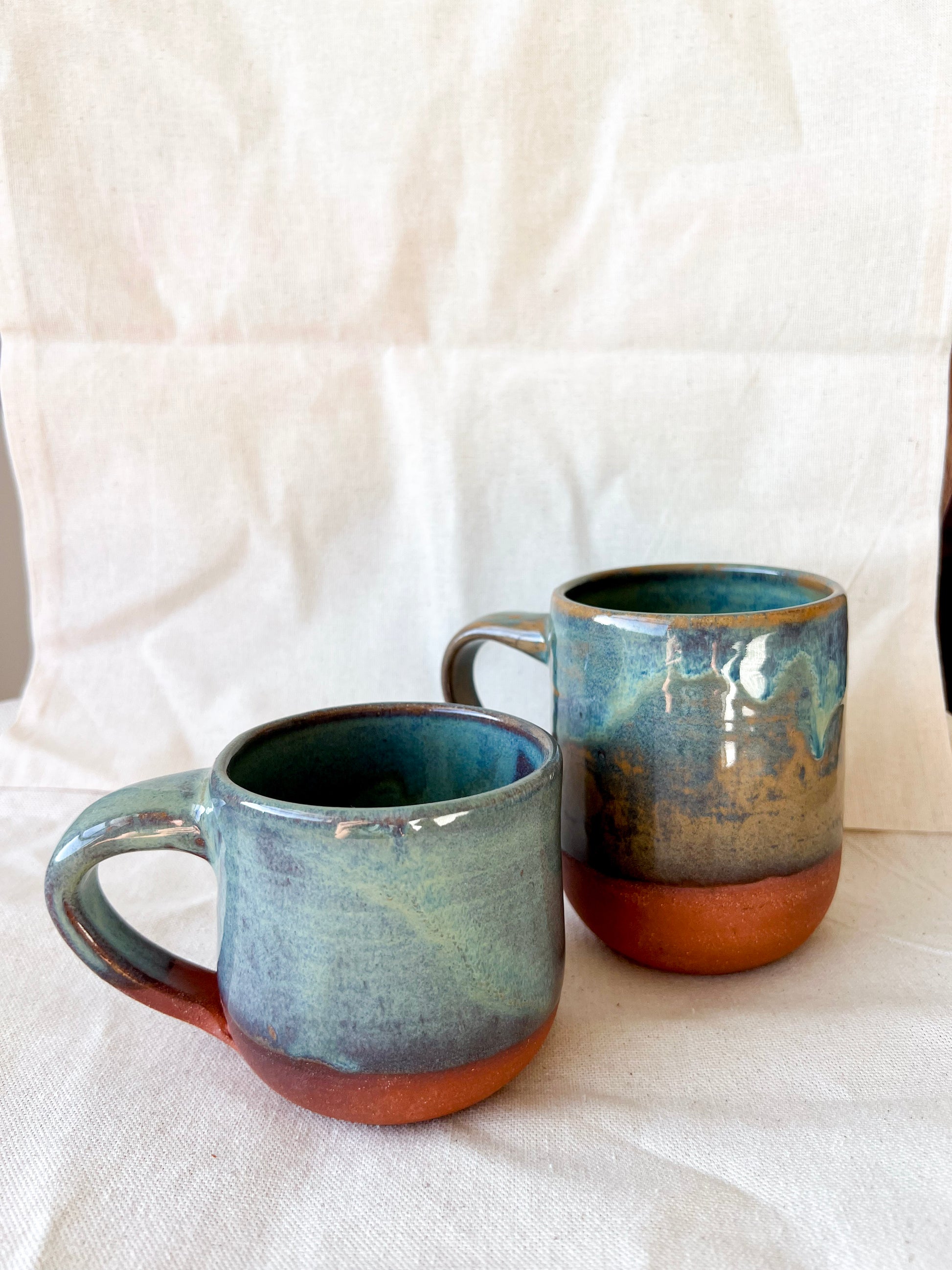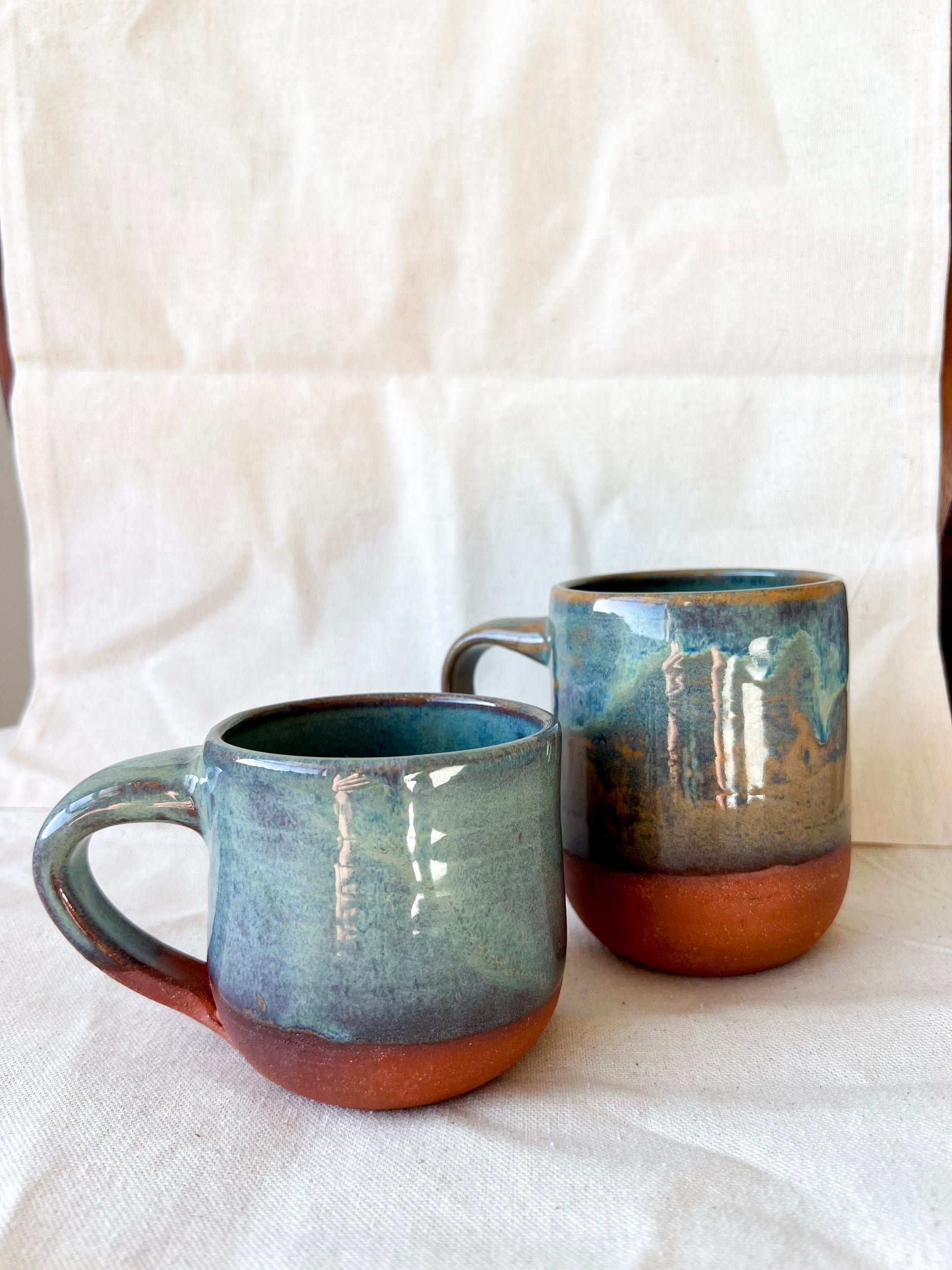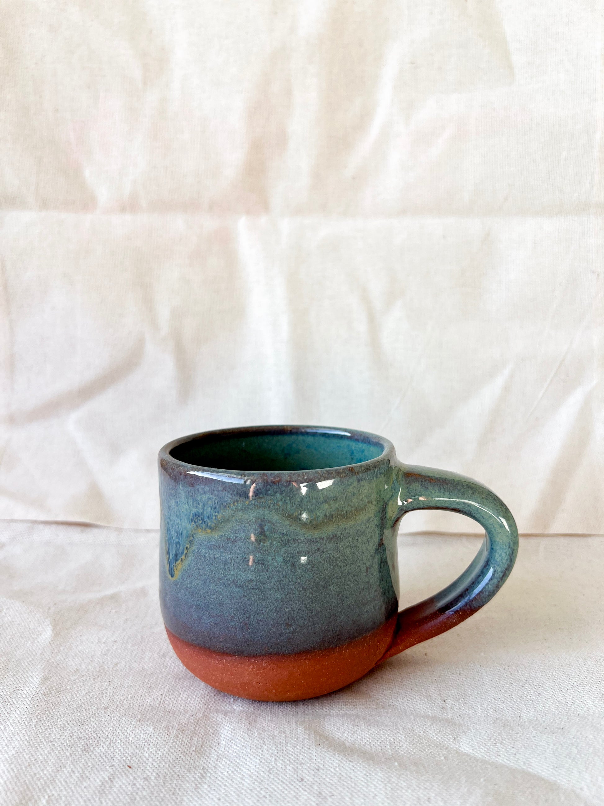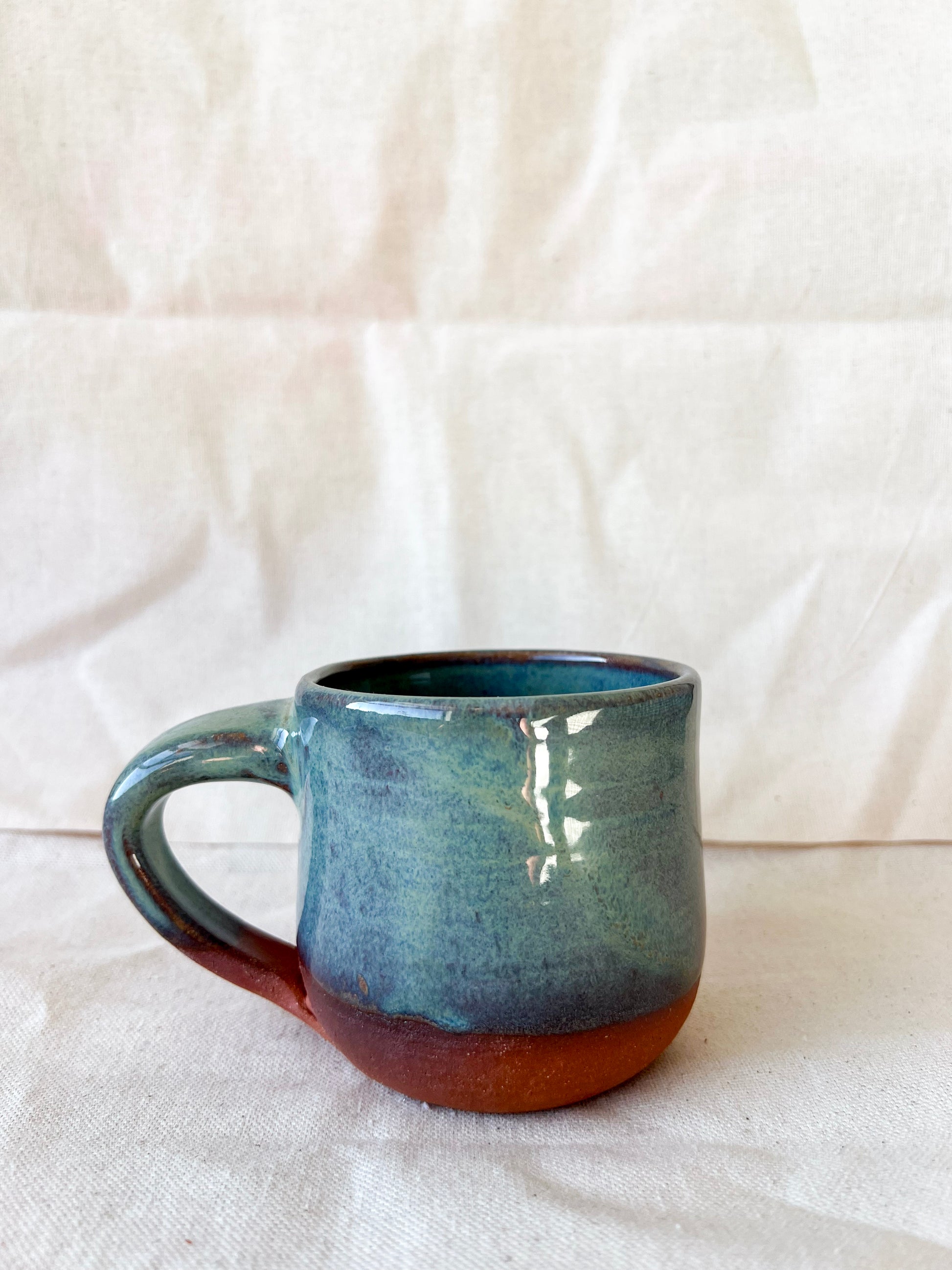 Handmade cup thrown on the wheel. This item is food and drink safe, and dishwasher and microwave safe.