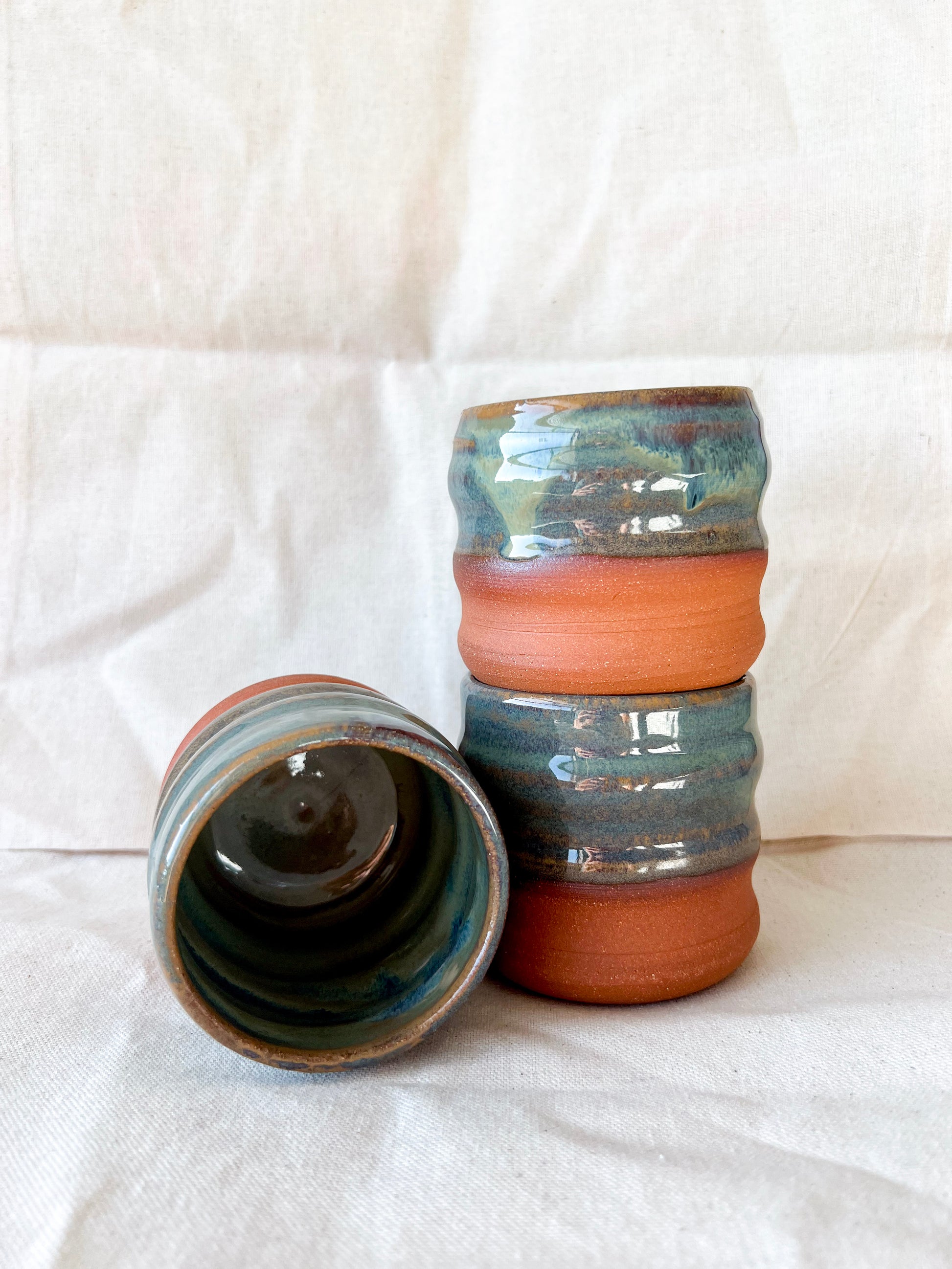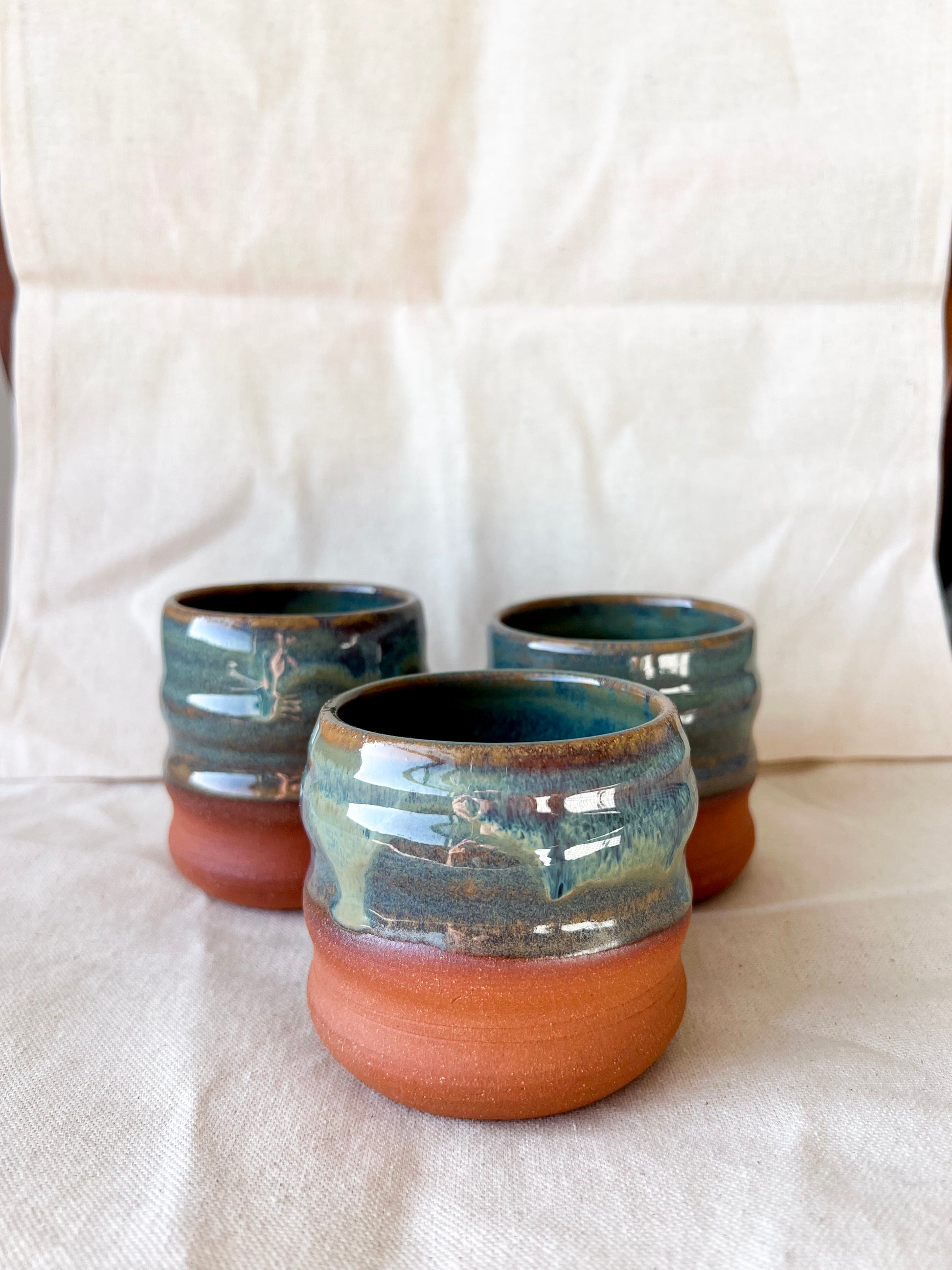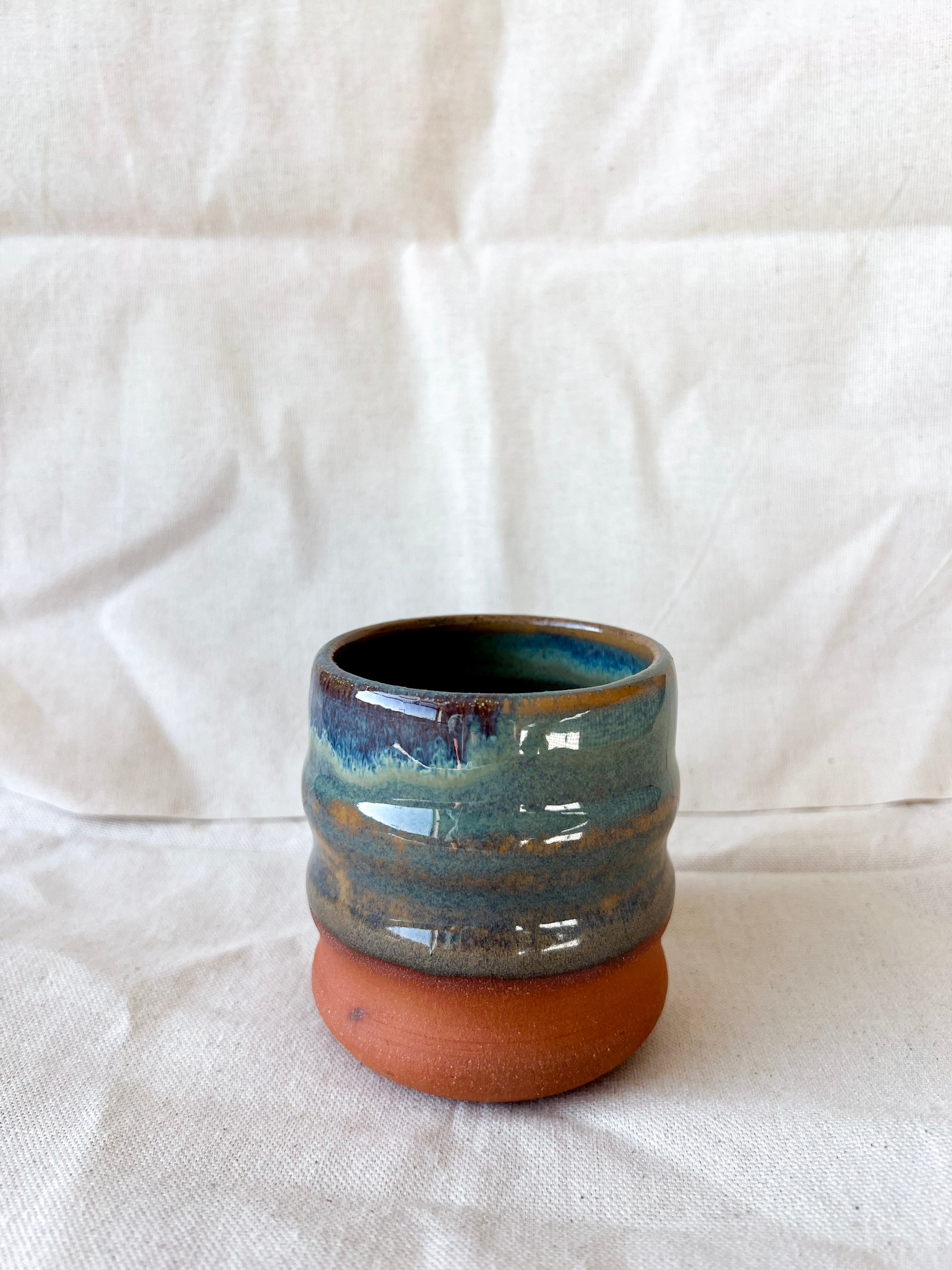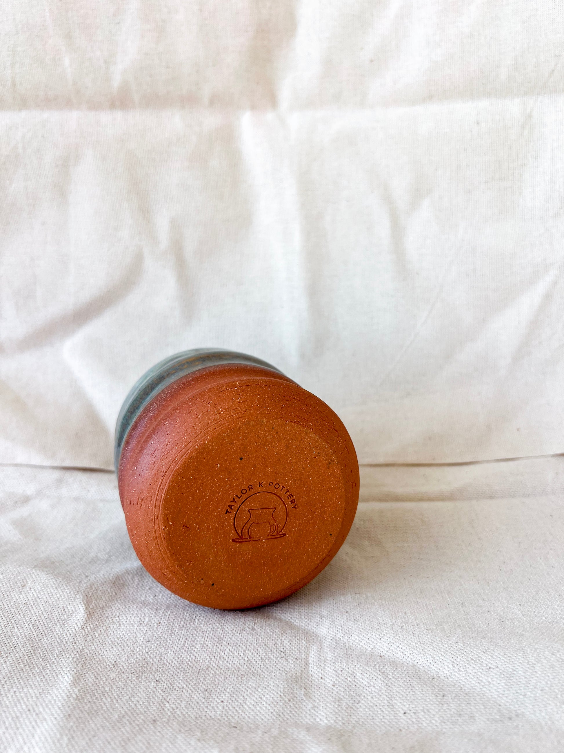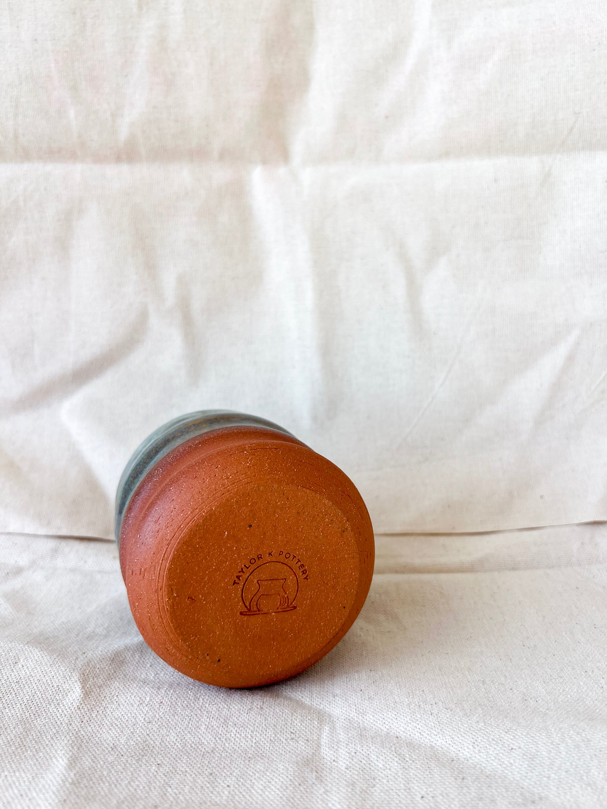 Handmade cup thrown on the wheel. This item is food and drink safe, and dishwasher and microwave safe.