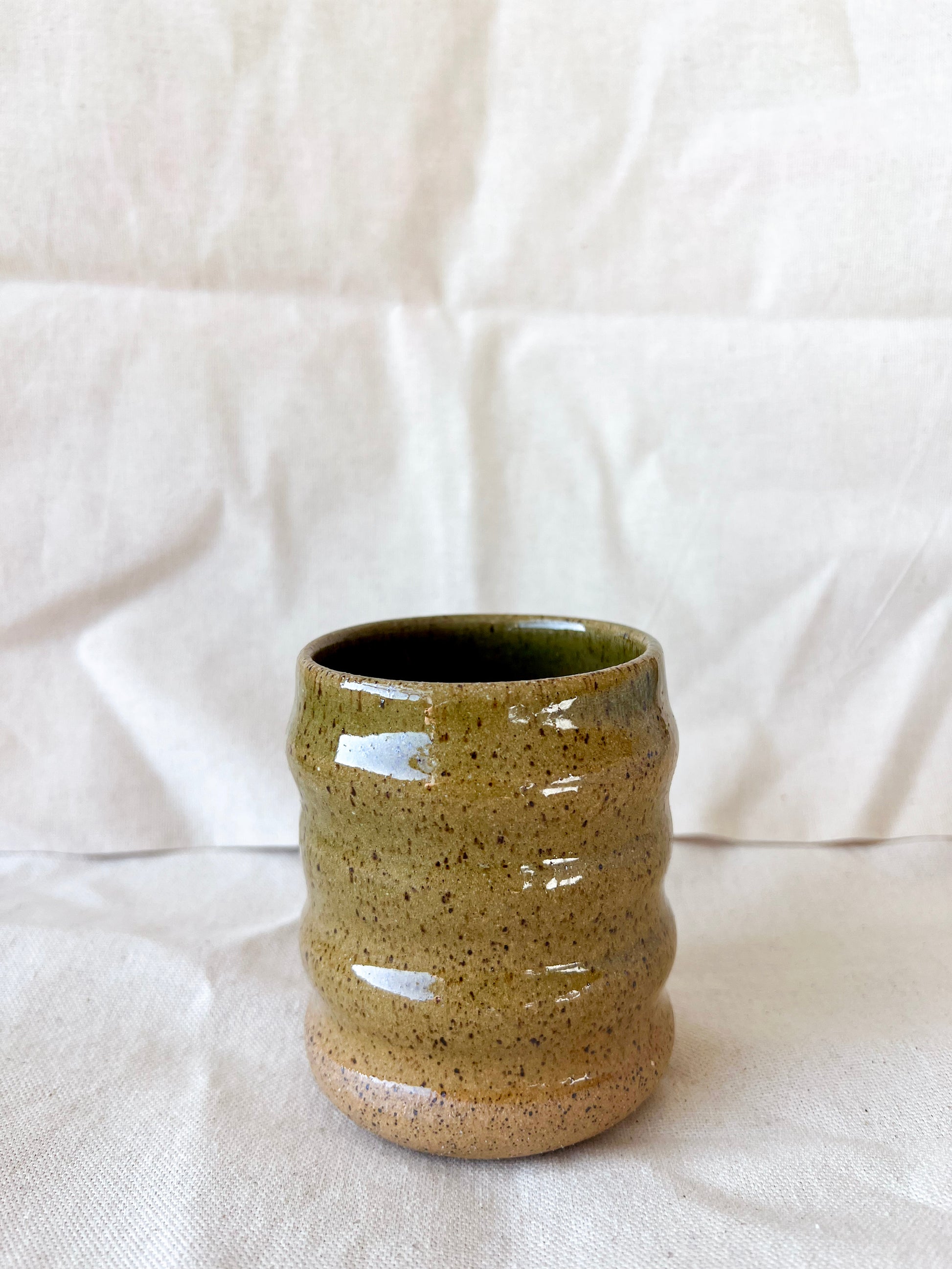 Handmade cup thrown on the wheel. This item is food and drink safe, and dishwasher and microwave safe.