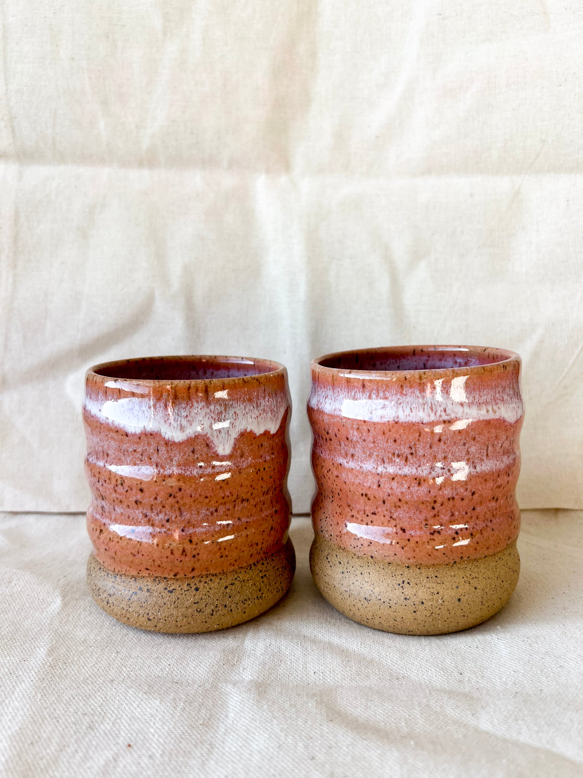 Handmade cup thrown on the wheel. This item is food and drink safe, and dishwasher and microwave safe.