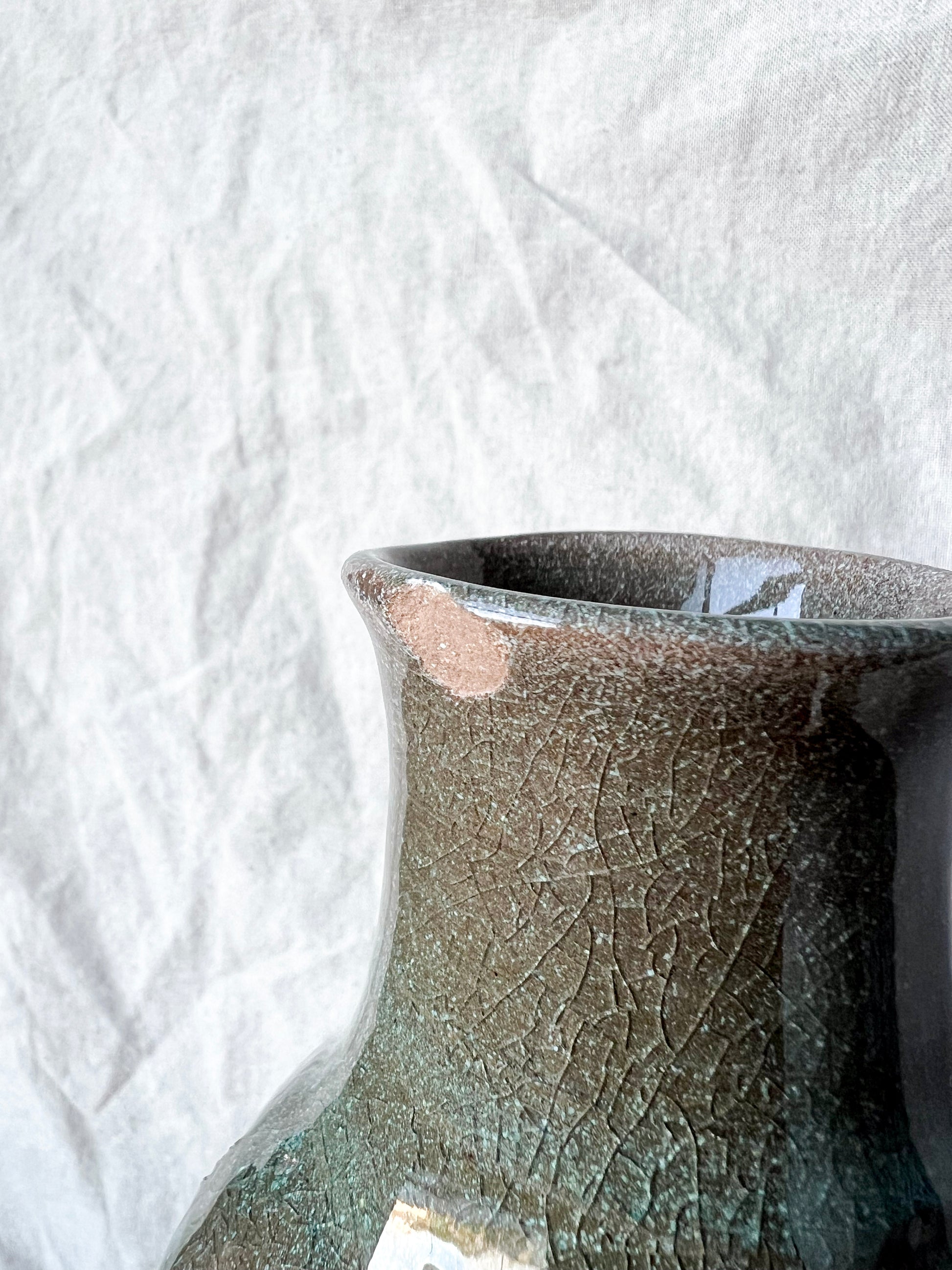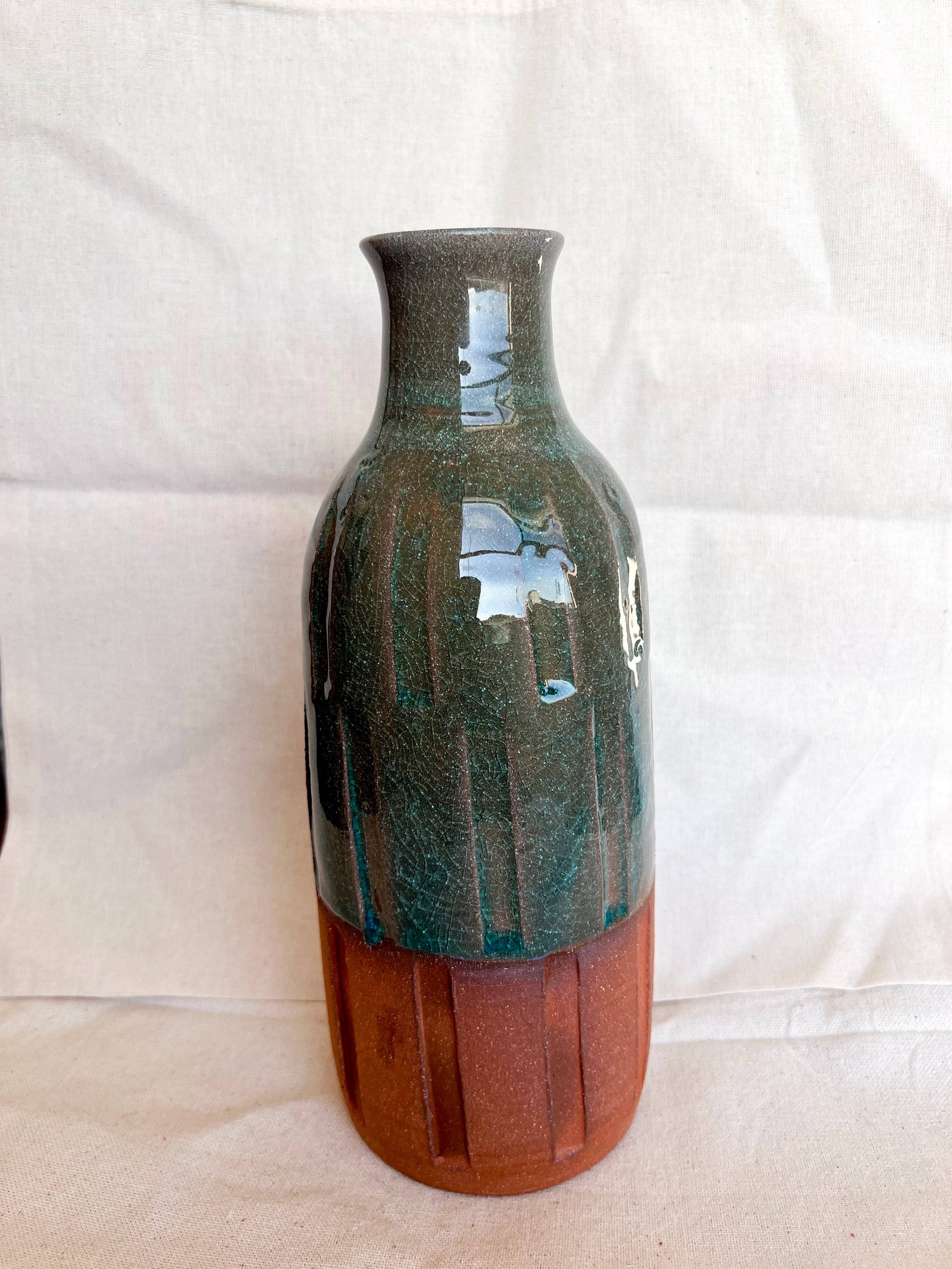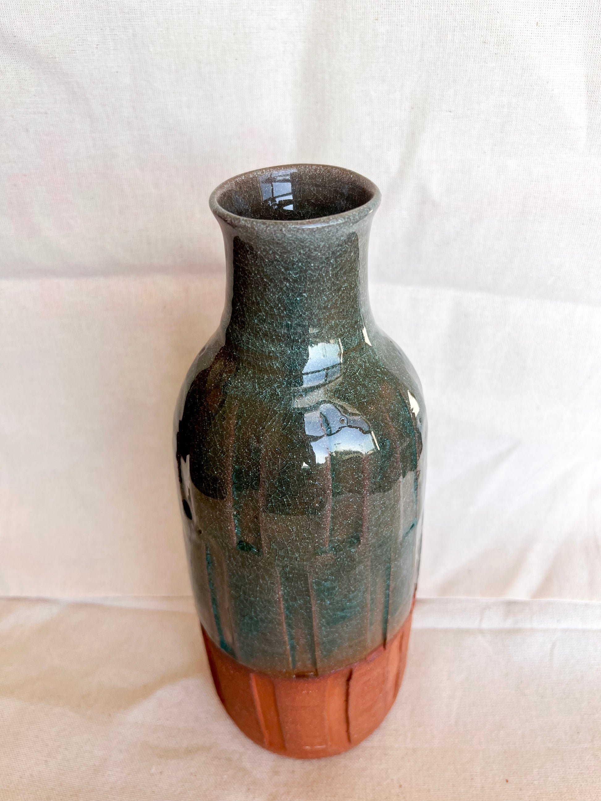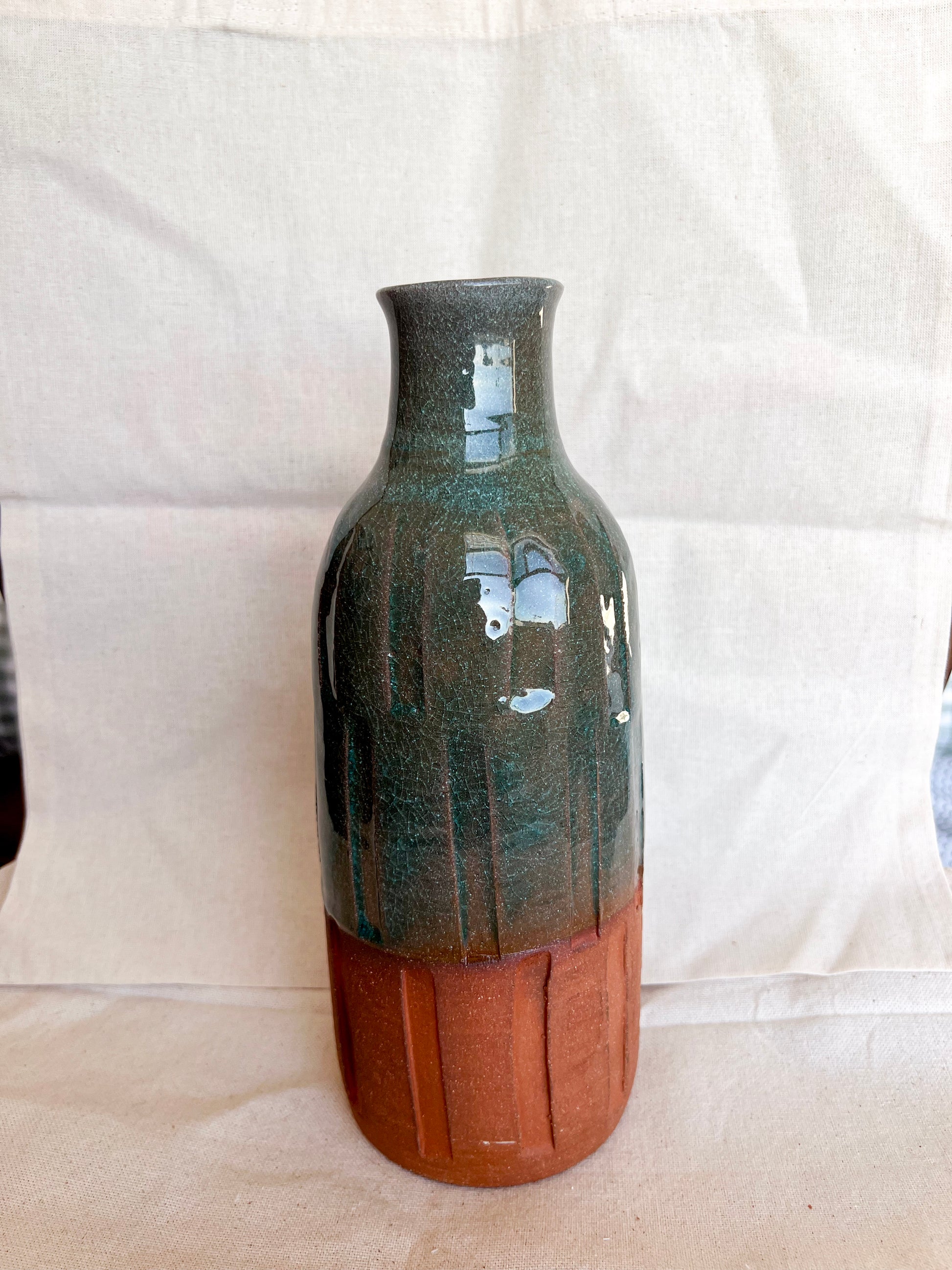 Handmade vase thrown on the wheel. The item is being listed as a second due to a small chip on the rim. Please see pictures.