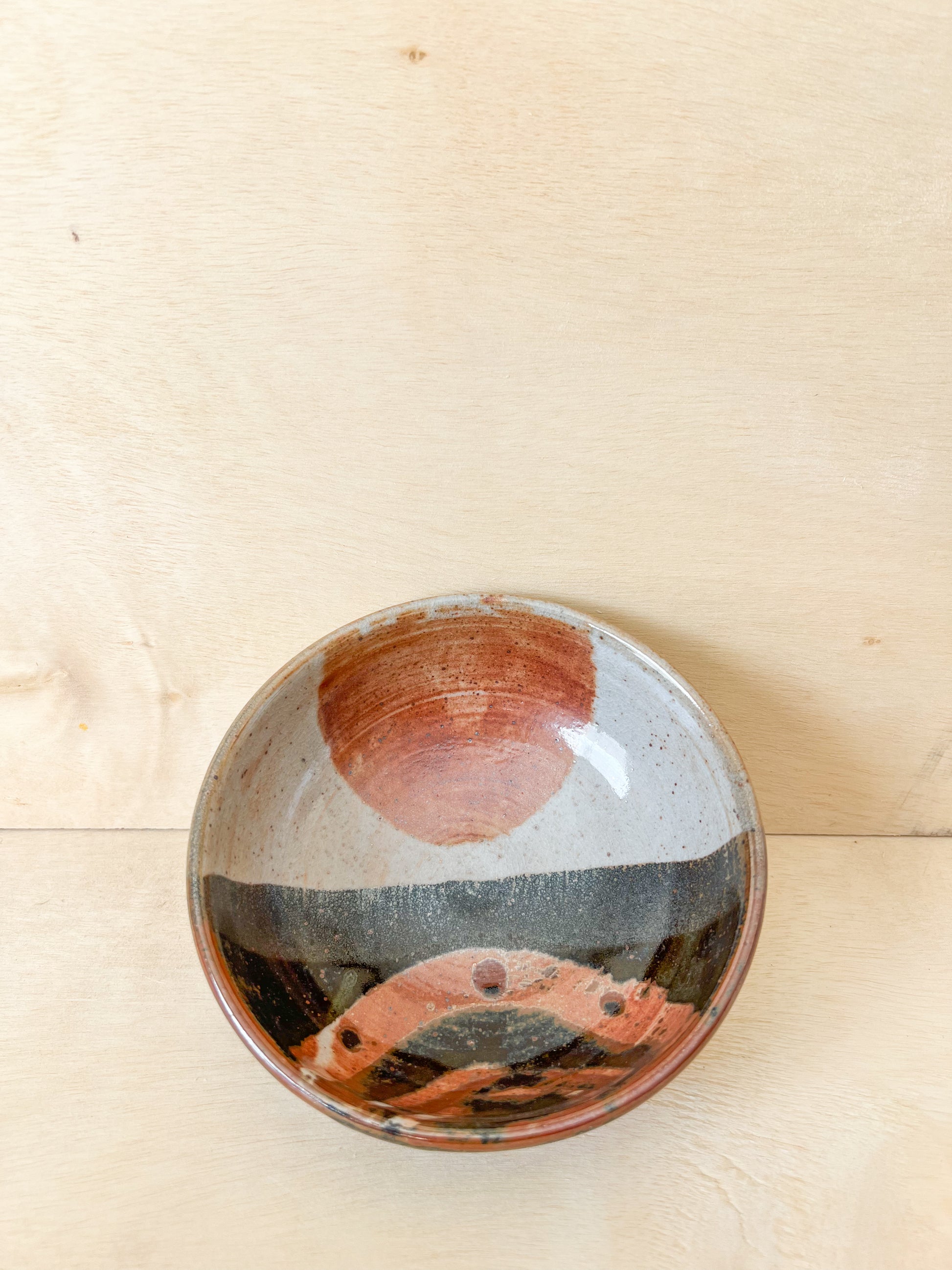 Handmade bowl thrown on the wheel. This item is food and drink safe, and dishwasher and microwave safe.