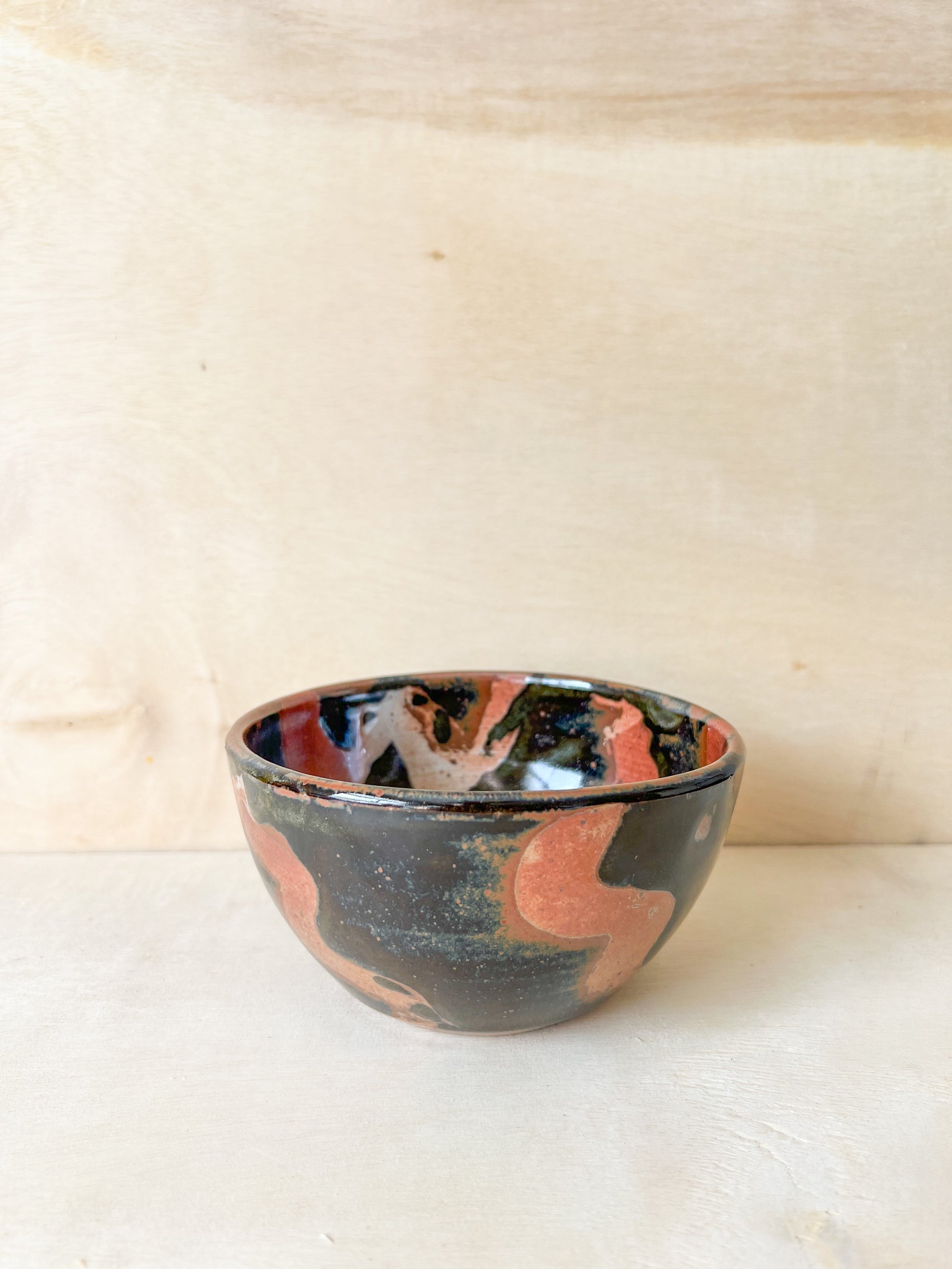 Handmade bowl thrown on the wheel. This item is food and drink safe, and dishwasher and microwave safe. Rim slightly uneven but fully functional!