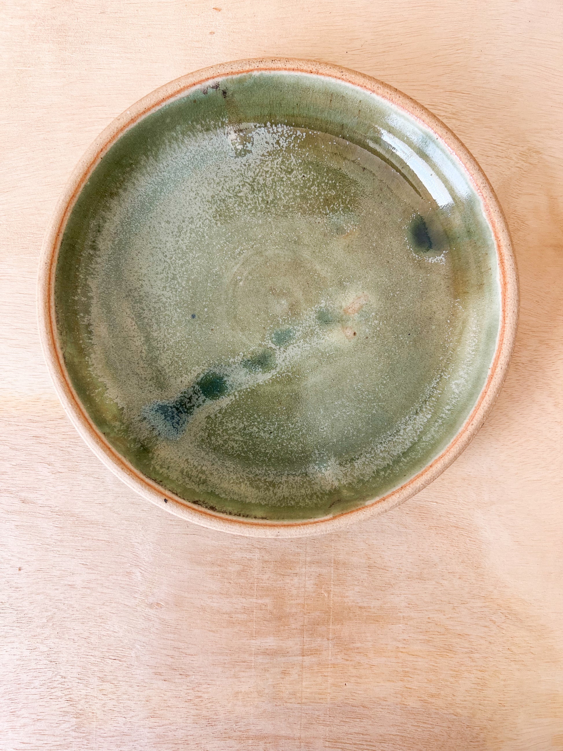 Handmade plate thrown on the wheel. This item is food and drink safe, and dishwasher and microwave safe.