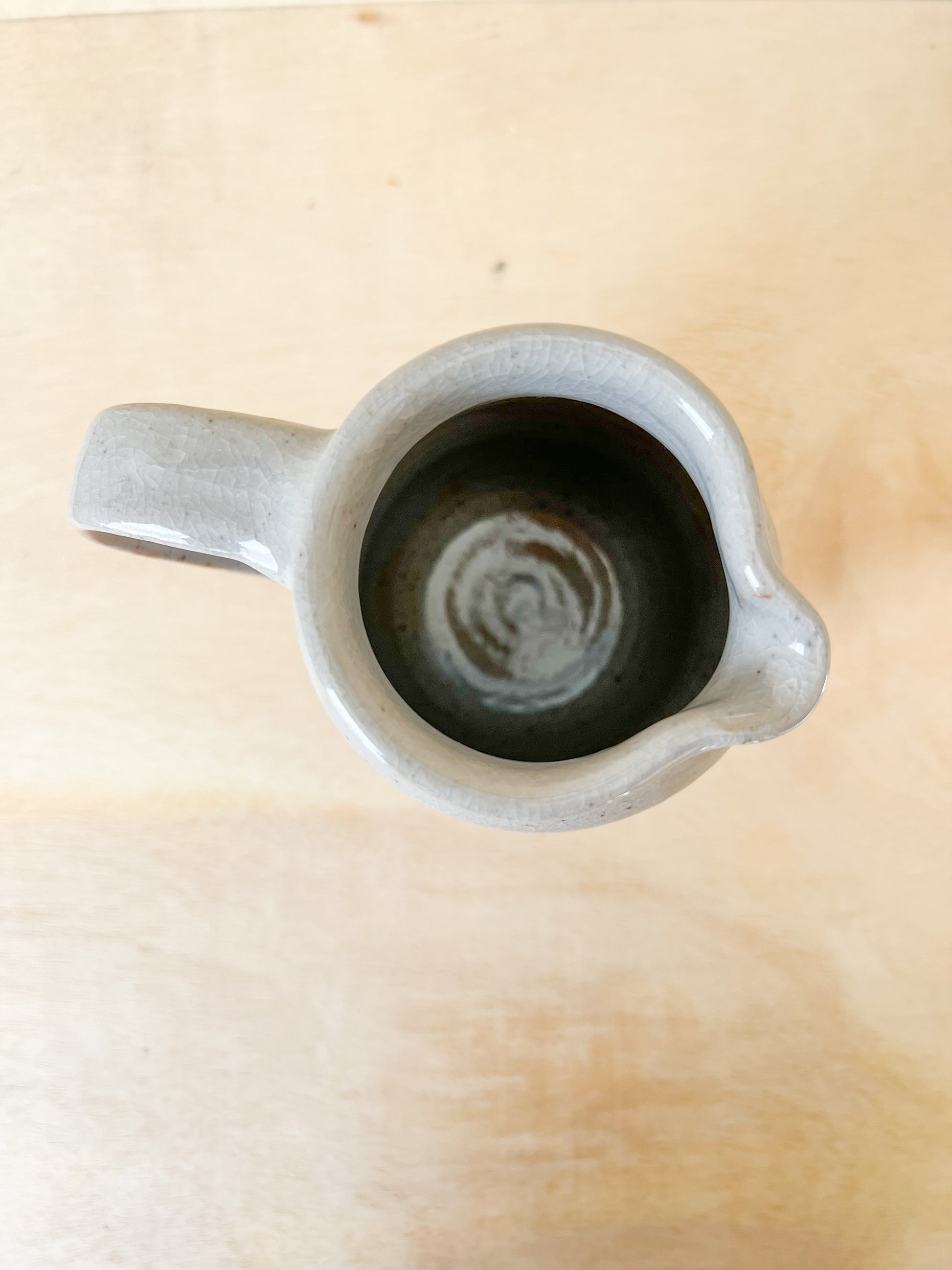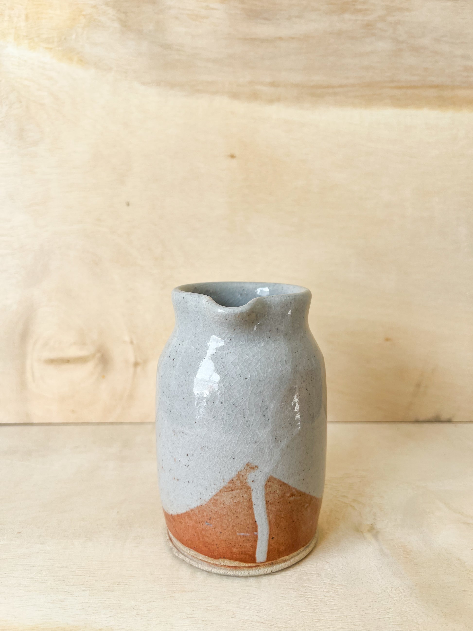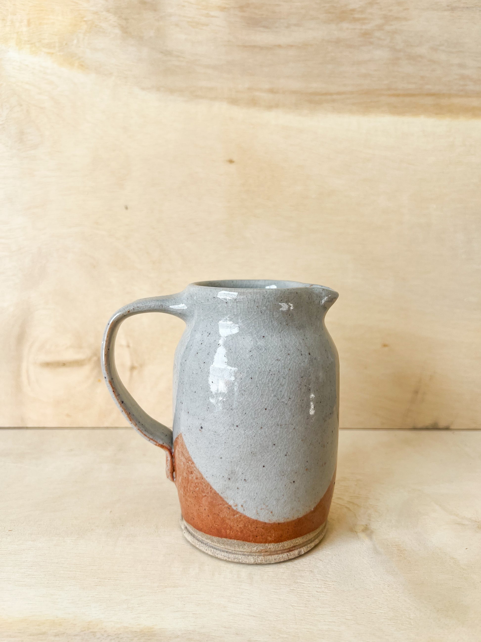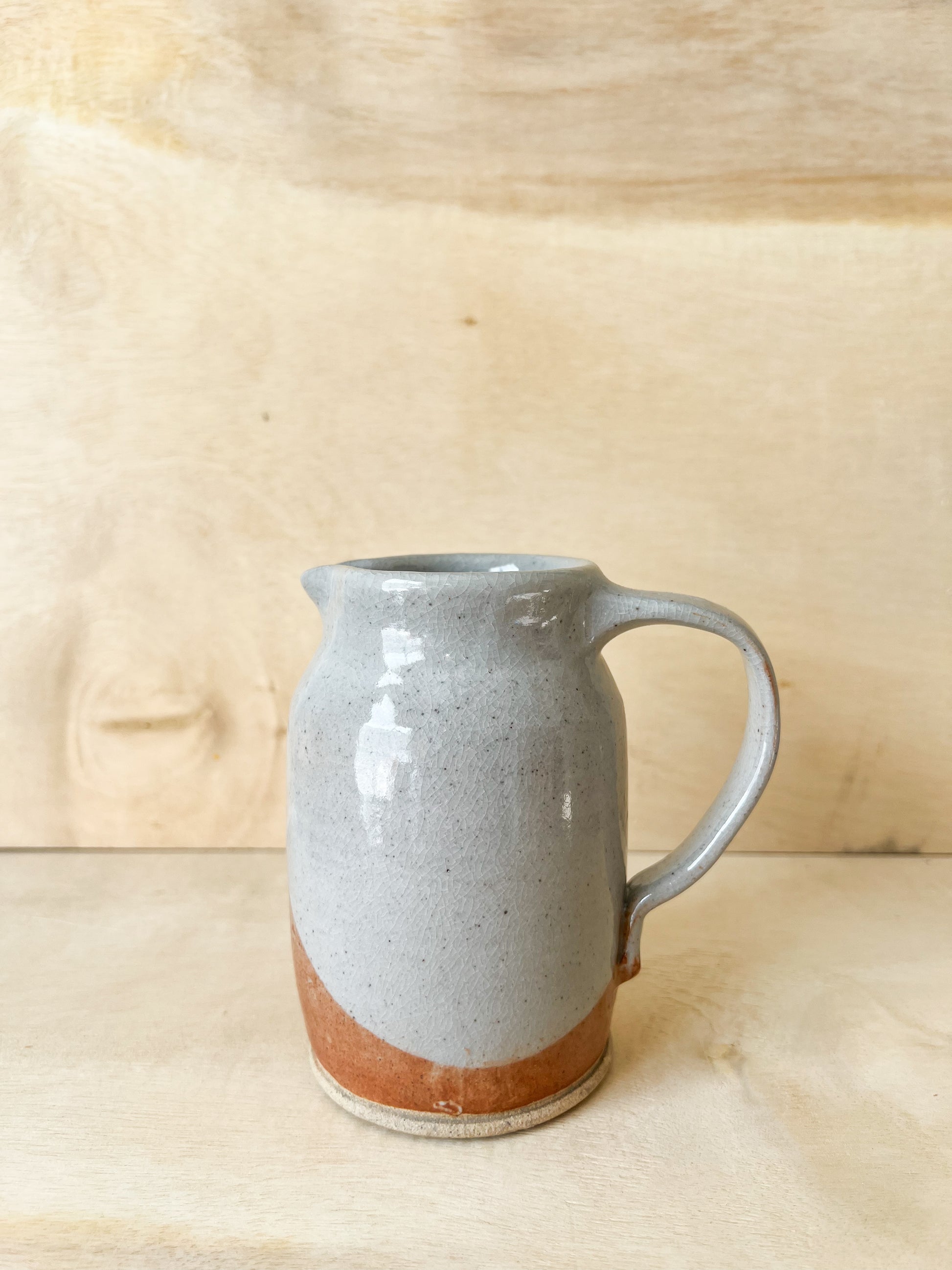 Handmade pitcher thrown on the wheel. This item is food and drink safe, and dishwasher and microwave safe.